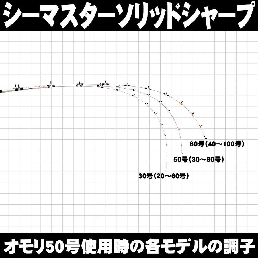 【50号(30〜80号)仕様:スペック】 ■全長:約182.5cm、仕舞:約115.5cm(ブランク本体は1PCです) ■標準自重:約192g(無垢ソリッド竿でありながら超軽量) ■素材採寸:元径/先径:約7.5mm/約1.7mm ■推奨オモリ負荷:50号(30〜80号) ■推奨ハリス:〜8号 ■付属品:竿袋 ※本商品に付属している竿袋に前モデルの竿名「SeaMaster」と書かれておりますが使用に支障はございません。