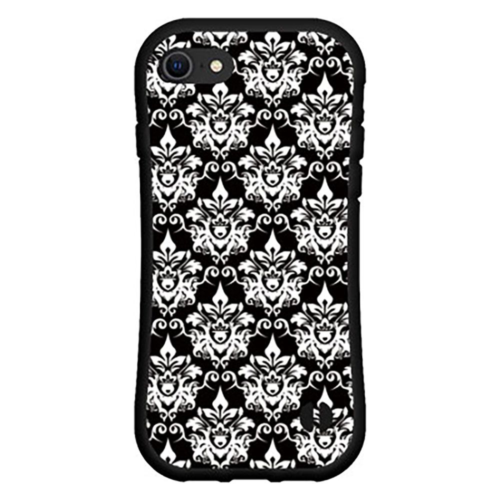 3D保護ガラスフィルム付 iPhone SE (第2世代) アイフォン エスイー2020 SE2docomo au SoftBank落としても割れにくい驚きの衝撃吸収力豊富なオリジナルデザイン耐衝撃 ハイブリッドケースダマスク柄(ブラック)