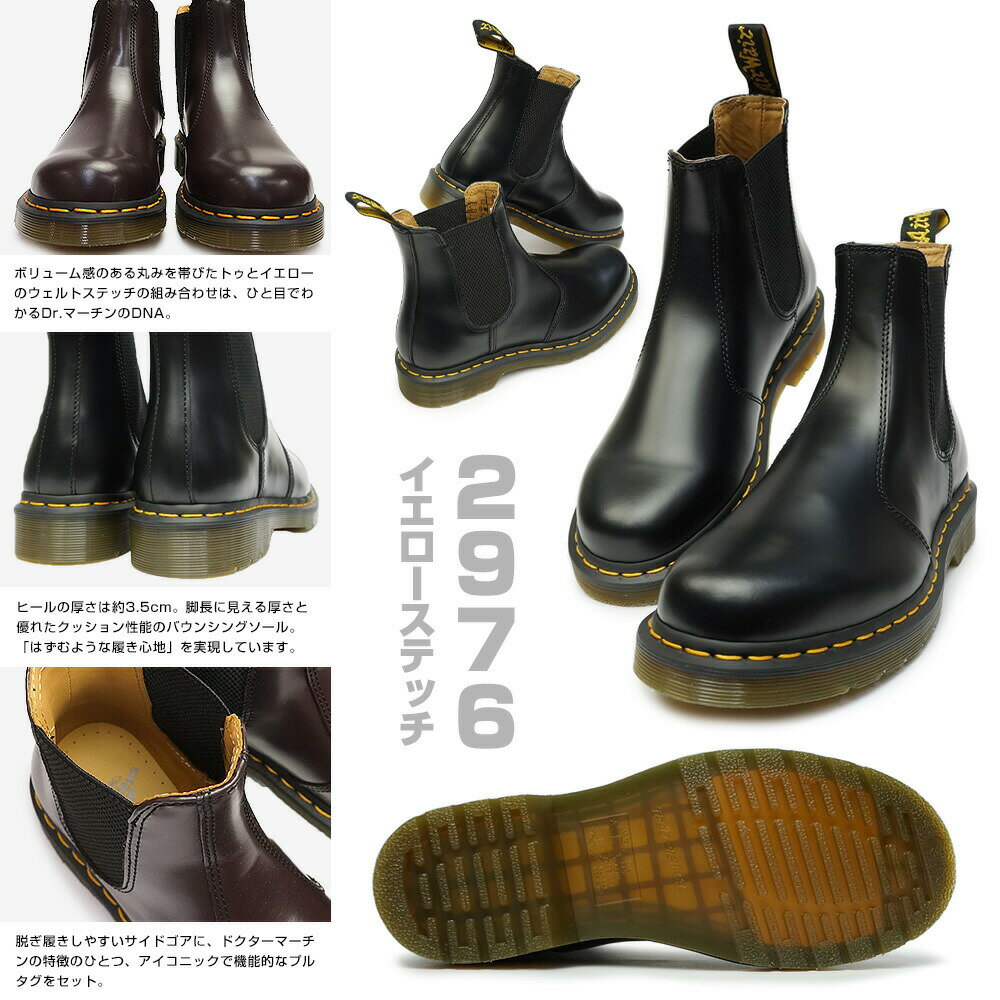 ドクターマーチン サイドゴアブーツ 正規品 2976YS チェルシーブーツ イエローステッチ 22227001 Dr.Martens 2976 YS CHELSEA BOOT Black