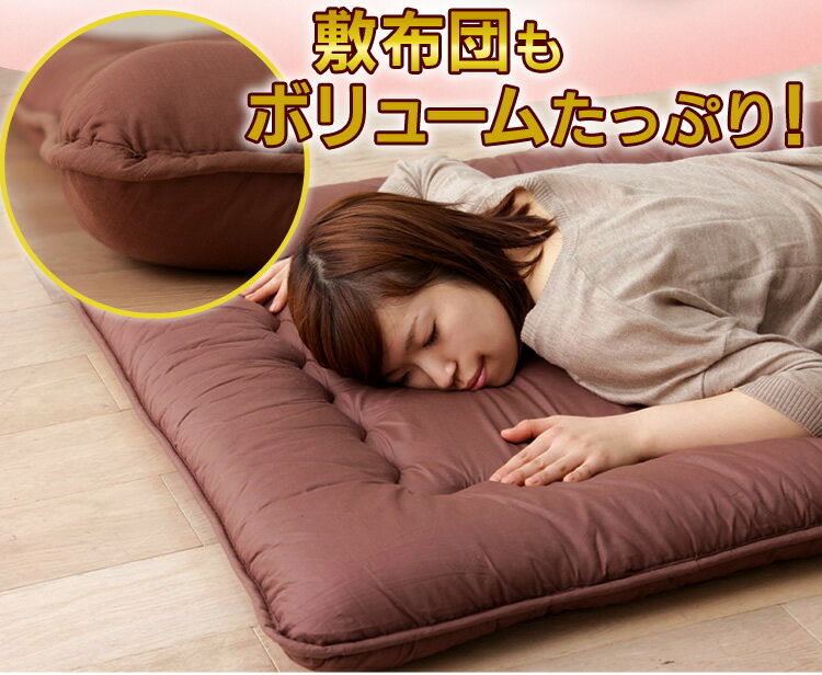 ■商品サイズ(約) [掛布団] 170×210cm(セミダブル)(充填量約2.2kg) [敷布団] 120×200cm(セミダブル)(充填約3.4kg) [枕]43×63cm(1個) [枕カバー]48×68cm(かぶせ式) [収納袋]幅120×奥行67×高さ37cm ■素材 [掛布団] 側生地:綿100%、詰物:フェザー100% [敷布団]側生地:ポリエステル100%(ピーチスキン加工)、詰物:ウレタン(厚さ2cm)、巻綿 [枕] 側生地:ポリエステル100%(ピーチスキン加工)、詰物:ポリエステル100% [枕カバー]ポリエステル100%(ピーチスキン加工) [収納袋]不織布+PVC ■カラー:ブラウン、アイボリー、ブラック、ネイビー、ライトブルー、ピンク ※配送時は圧縮梱包でコンパクトな状態でお届けします。