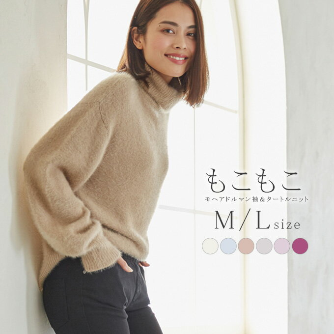 シャギーハイネックニットセーター トップス バルーン袖 タートルニットドルマン袖 ニット もこもこ ゆったり ラメ入り モヘアドルマン キラキラ 長袖 Uネック クルーネック 無地 フェミニン 袖ボリューム レディース【10-14営業日に発送予定】