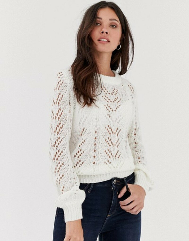 ブレーブソウル レディース ニット・セーター アウター Brave Soul lightweight pointelle sweater with balloon sleeve in oatmeal Oatmeal